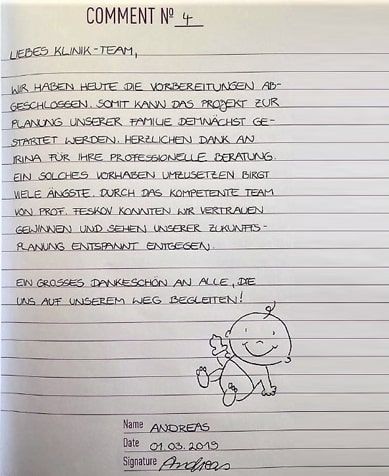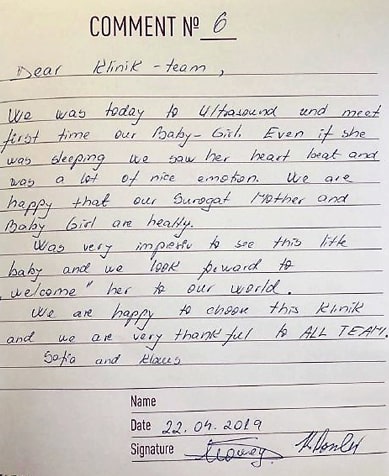 Siamo grati a tutti i nostri clienti per la loro trasparenza, le loro recensioni e la loro opinione sul nostro lavoro! Rispettiamo le persone che sono pronte a raccontare dettagliatamente sulla maternità surrogata, a condividere la loro storia e esperienza, dando speranza ad altre coppie.